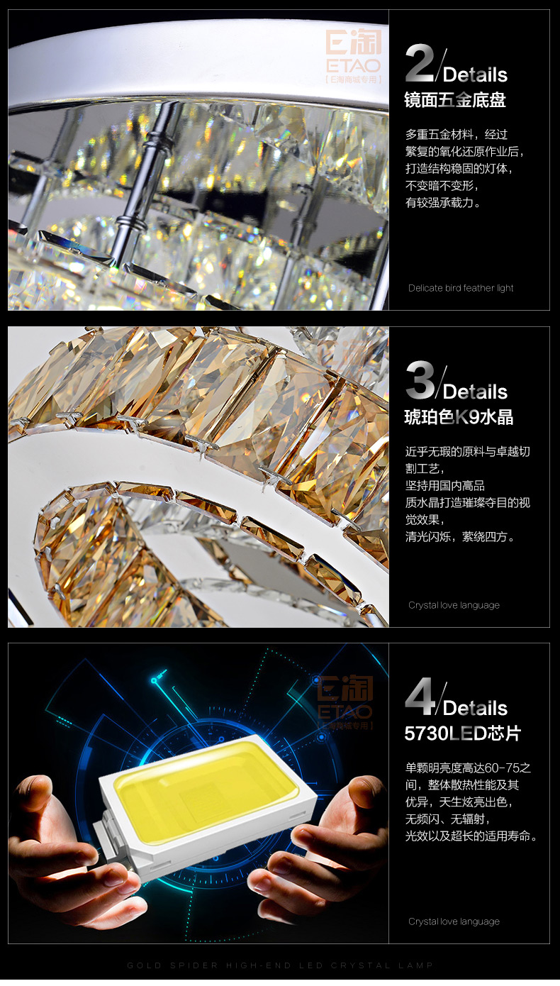 产品材质:不锈钢、水晶。